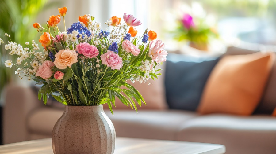 Usar flores frescas para la decoración primaveral del hogar te conecta con la naturaleza. Es agradable traer el exterior al interior. Sin embargo, no duran mucho. Se marchitan después de una o dos semanas. Hay que cambiar el agua. Hay que podar los tallos. Es un trabajo, pero para muchos vale la pena.